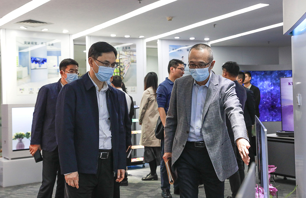 On the afternoon of November 12,Zhang Liwei, Party Secretary of Longgang Districtled a team to survey Shenzhen KTC, accompanied by leaders of relevant departments and relevant responsible persons of Bantian Sub-district of Longgang District. Ling Bin, President ofKTC led the reception team.