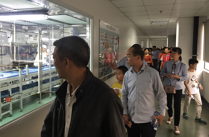 11月11日上午,南宫28公司坂田工厂和惠南工厂共迎来近百名员工家属,两地工厂分别安排“讲解员”、“导游”以及“安全指引员”带领员工家属们参观公司展厅、办公室区域、生产车间、园区环境、休闲娱乐设施等。参观期间,来自家属们的称赞声不绝于耳,时而赞叹公司产品的炫酷前卫,时而夸赞办公环境的端庄大气,漫步于园区大道、驻足在宿舍楼前,员工家属们无不流连忘返。