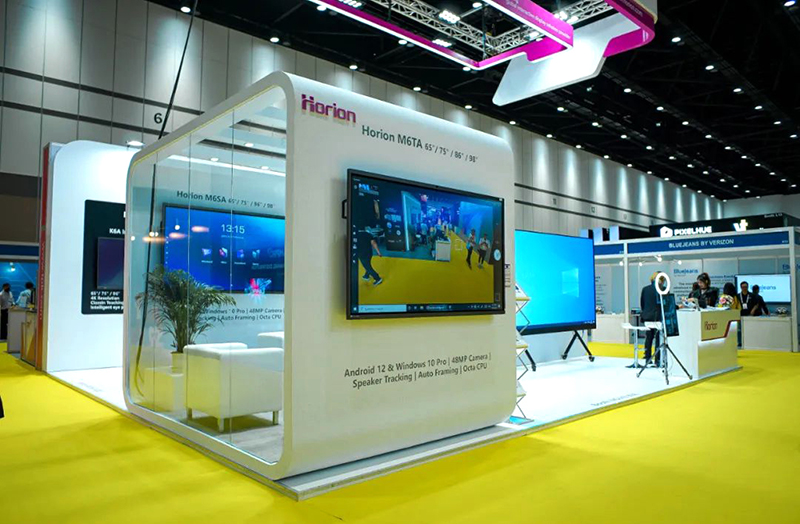 展位上,前来咨询和洽谈的客户络绎不绝。其中,皓丽创新性的视听产品和解决方案吸引了众多业内人士的关注,包括135" LED巨幕产品为核心的大型会议协同场景解决方案、M系列的会议平板M6TA为核心的Horion IFP智慧解决方案、以及K系列的Horion智慧教室解决方案,皓丽直播机等。皓丽工作人员细致地向客户介绍产品与服务,进行深入交流和探讨,了解客户需求,及时提供意见,为未来的合作建立坚实基础。
