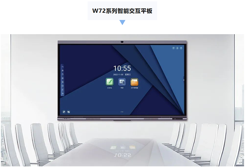 W72系列智能交互平板采用一体式内置摄像头麦克风阵列,拥有4K高清摄像头以及全向8路线性阵列麦克风,带来出色的交互体验;利用NFC近场识别,提笔感应功能,一键打开白板书写,告别繁杂,轻松办公;支持Type-C拓展,实现一线集成的同时省去复杂的多线连接,拓展多种设备。
